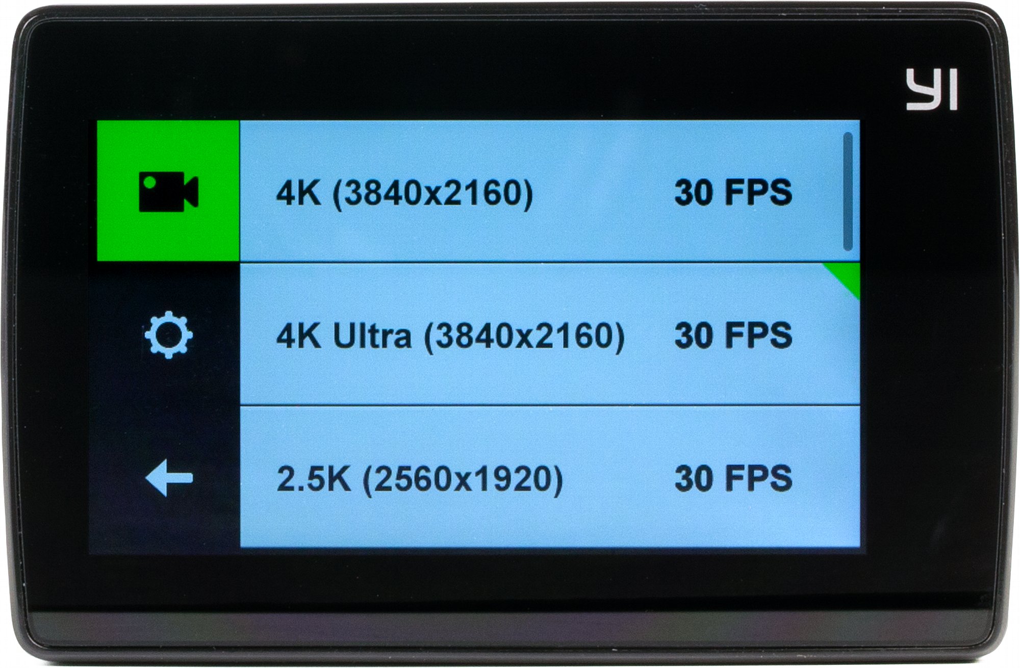 Bist du aber aufs Unterwassergehäuse nicht angewiesen, ist die Bedienung dank Touch-Screen ein Vergnügen. Und überhaupt ist der Monitor klasse. Der 2,2 Zoll große Monitor im 16:9-Format belegt den größten Teil der Rückseite der kleinen Kamera und damit kann man wirklich schon etwas anfangen. Der Monitor hat immerhin 640 x 360 Pixel Auflösung, das ergibt bei der kleinen Größe schon scharfes Bild mit 330 ppi und läuft unter "Retina Display". Das zum Schutz verbaute "Gorilla Glass" kennt man sonst eher von Smartphones. Und auch das Touch-Feeling ist Smartphone-Like. Der Finger rutscht leicht übers Glas, die Menüs reagieren blitzschnell und sehen vernünftig aus. Die englische Menüoberfläche ist fehlerfrei (zumindest habe ich keinen Fehler gefunden), auf schlechte/fehlerhafte Google-Translate-mäßige Übersetzungen verzichtet Yi Technology (im Gegensatz zu vielen anderen Chinesischen Marken) konsequenterweise. Alles in allem ist der Monitor der Yi 4K Action Camera derzeit eindeutig der beste Actioncam-Monitor auf dem Markt. Ein "Trick" bei der Bedienung ist übrigens die Slide-Bewegung von oben nach unten. Daraufhin kannst du unter anderem WiFi ein- und ausschalten. Das geht schneller als übers Menü. Auch den Fernbedienungs-Modus in Verbindung mit einer als Zubehör erhältlichen Bluetooth-Handfernbedienung ist auf diese Weise schnell erreichbar.