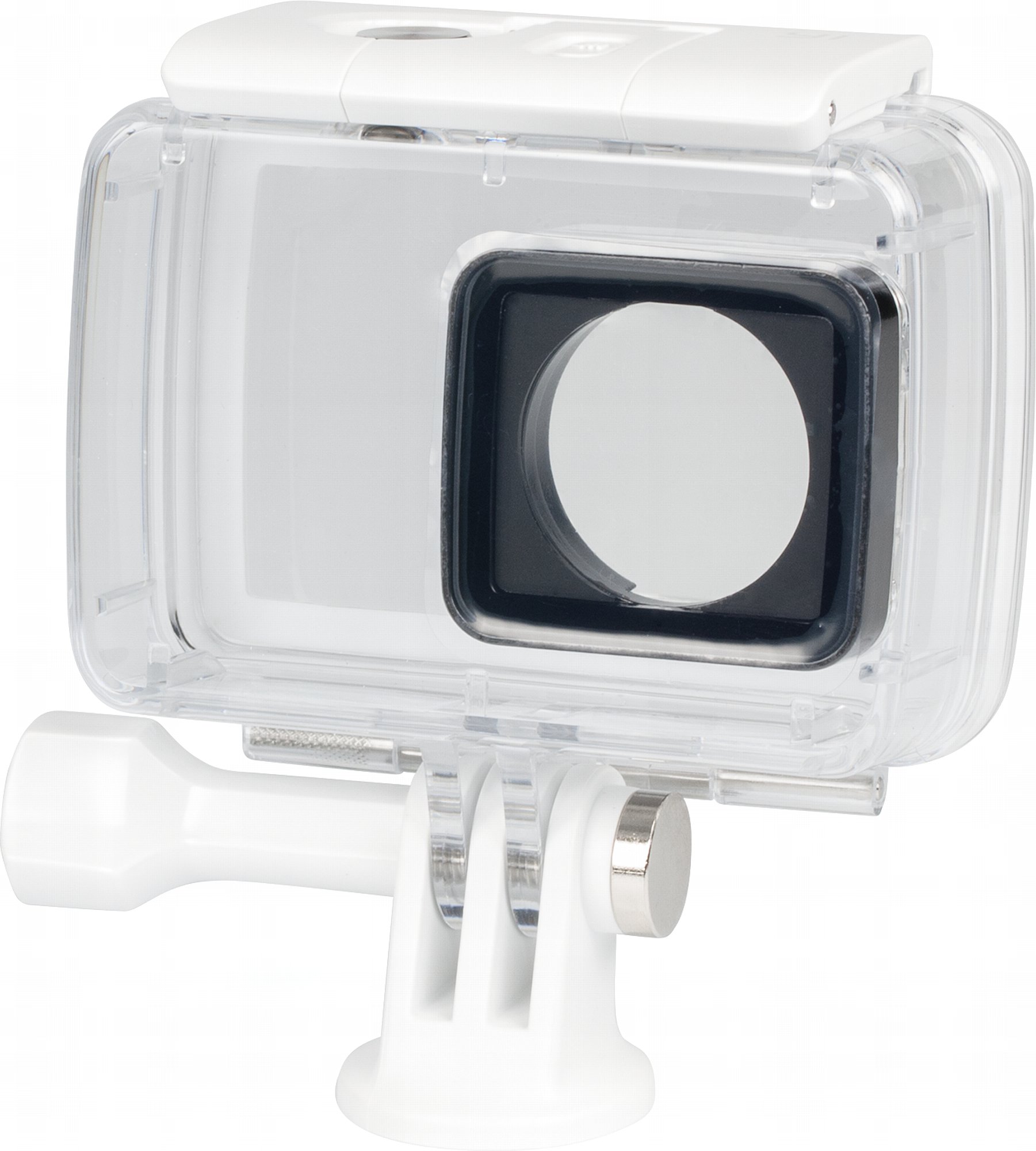 Praktikabler jedenfalls als das 40 Meter wasserdichte Schutzgehäuse. An diesem ist zwar grundsätzlich nichts auszusetzen: Alles ist prima verarbeitet und die Finger-Halterung ist kompatibel zu GoPro-Halterungen, sodass du alle Halterungen verwenden kannst, die zu GoPro-Kameras kompatibel sind. Die brauchst du sicherlich auch, denn zum weiteren Lieferumfang gehört nur ein Adapter für ein Standard-Stativgewinde und natürlich eine Knebelschraube, um beides miteinander zu fixieren. Helmhalterungen, Lenkerhalterungen usw. musst du dir noch extra besorgen. Ein Riesenmanko ist aber, dass dem Gehäuse lediglich eine einzige, wasserdichte Plexiglas-Klappe als Rücktür beiliegt. Damit ist die Kamera im Gehäuse nahezu unbedienbar. Lediglich einschalten, starten, stoppen, ausschalten geht. Hast du vor dem Einsetzen ins Gehäuse die falsche Videoauflösung eingestellt, hast du Pech. Dann darfst du die Kamera wieder aus dem Gehäuse fummeln. Und in dem Moment ist natürlich erstmal gar nichts mit Schutz. Hier zeigt sich ganz klar der Nachteil des Nur-Touch-Screen-Konzepts. Für den harten Einsatz ist die Yi Action Camera eigentlich gar nicht gemacht, sondern sie ist eher die Schönwetter-Actioncam, die sich in ihrer Livestyle-Lederhülle wohlfühlt. Wenigstens eine Umschaltung zwischen Foto-Modus und Video-Modus ohne Touchscreen hat der Hersteller per Firmware-Update nachgerüstet: Im Menü gibt es nun eine Option "In Housing Mode". Schaltest du diesen ein, kannst du die Kamera durch langes Drücken der einzigen Taste (des Auslösers) zwischen Video- und Foto-Modus umschalten. Normalerweise schaltet langes Drücken die Kamera aus. Das bedeutet wiederum: Im Gehäuse eingesetzt kannst du die eingeschaltete Kamera nun nicht mehr ausschalten. Na prima. (Über den Touch-Screen geht es mit einer Swipe-Down-Bewegung, dann rechtes Symbol – aber der Touch-Screen funktioniert ja im Gehäuse nicht.) Theoretisch (und auch praktisch) kannst du die Kamera natürlich über die Smartphone-App fernbedienen, aber das hilft dir zumindest unter Wasser ja nichts. Wenn du das Gehäuse allerdings als Schutzgehäuse nimmst (über Wasser) und nicht als Tauchgehäuse, dann ist das die Lösung (siehe unten).